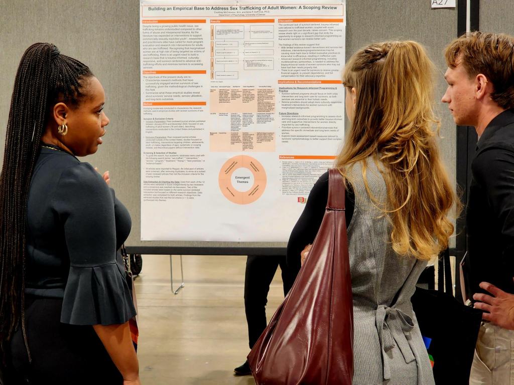 Drawing on two studies with survivors of intimate partner violence, Leah Waltrip led a poster describing women’s experiences with head injuries, symptoms of post-traumatic stress disorder (PTSD), and healthcare. Exploring two different analytic approaches, the study tested whether patterns of brain injury and PTSD symptoms were linked to things like trust in doctors, understanding health information, or getting medical care when it’s needed. This led to discovering four distinct patterns of symptoms, though these patterns weren’t linked to differences in healthcare access or engagement.
