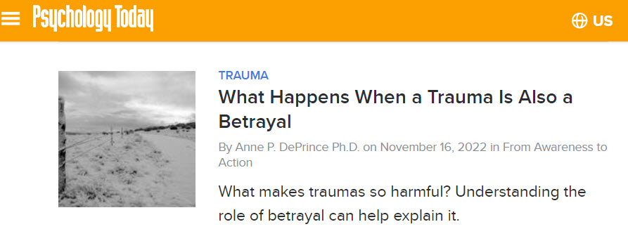 Translating awareness to action is a central theme of Every 90 Seconds as well as a passion. This year, I took that theme (and passion) to the (virtual) pages of Psychology Today. Under the banner, “From Awareness to Action: Addressing Intimate Violence and Trauma Together,” here are the topics I’ve covered so far: If youContinue reading “Sharing Trauma Research for Action @PsychToday”